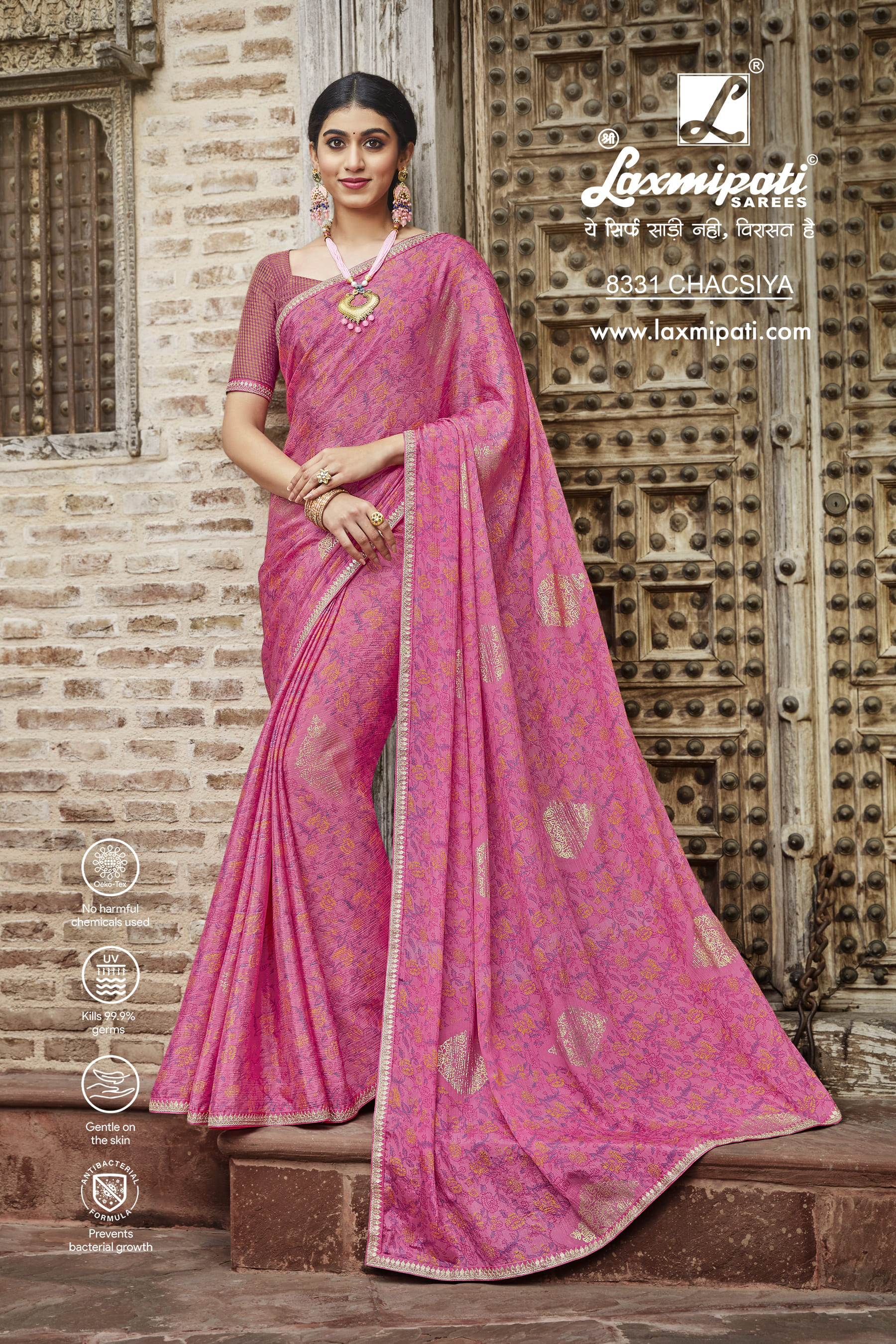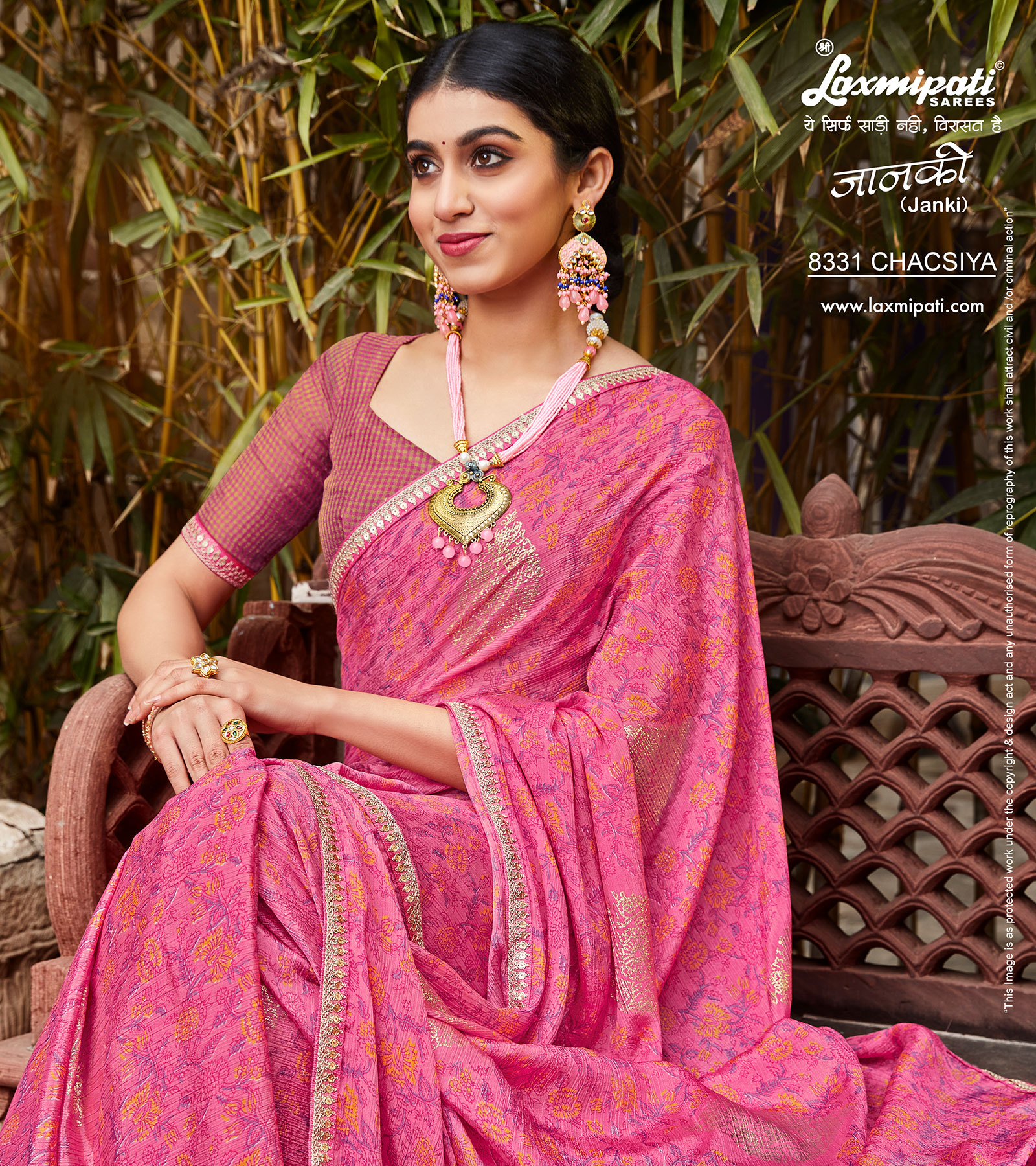 8331 Laxmipati Janki 8331 Satin Chiffon Pink Saree