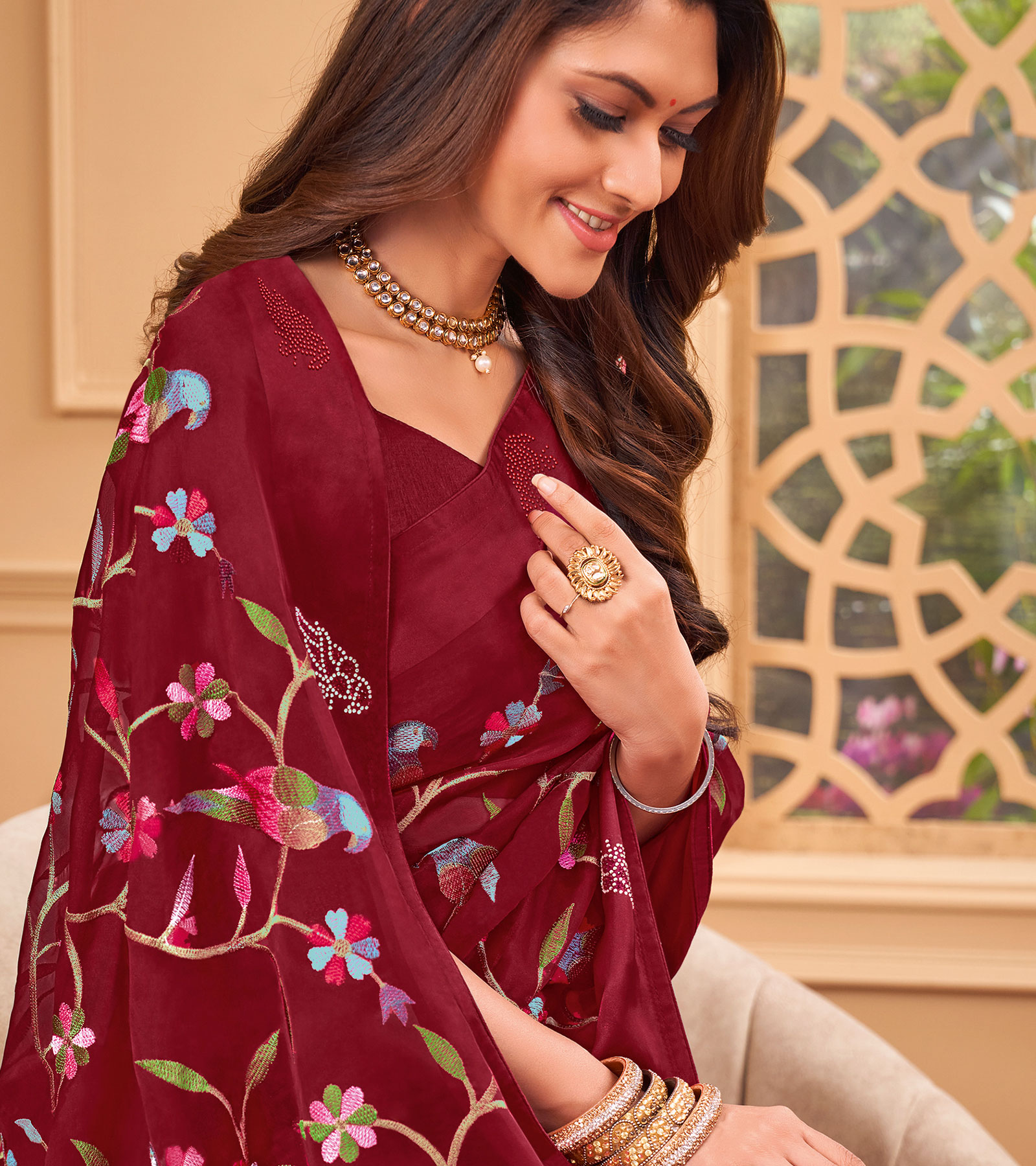 it a lot. It has a ethnic look. Loved the work on the saree. Also loved the colour.